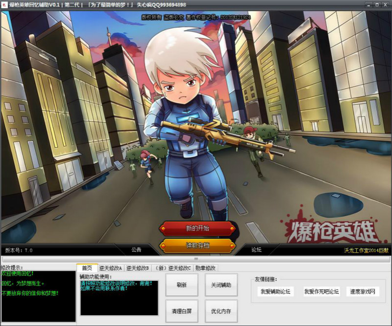 爆枪英雄回忆辅助第二代是一款最新的升级版辅助,它专为热门射击枪战页游《爆枪英雄》制作,辅助操作简单,功能丰富,比如支持逆天修改、勋章修改、秒升满级、刷无限金币、百分百刷爆基因等功能!喜欢玩爆枪英雄的玩家千万不要错过这款爆枪英雄回忆辅助第二代哟!