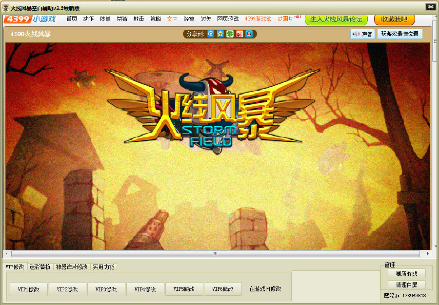 火线风暴空白辅助是一款专为网页游戏《火线风暴》制作的辅助工具,玩家可以通过这款火线风暴空白辅助工具对游戏属性进行适当的修改,比如VIP修改、迷彩替换、神器碎片修改、攻击倍数修改等等,极大地方便了玩家升级做任务,让玩家可以更加轻松的畅玩游戏。