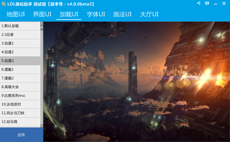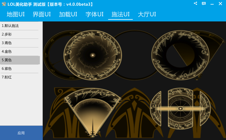 LOL美化助手测试版向玩家免费提供了地图UI、界面UI、加载UI、字体UI、施法UI以及大厅UI修改更换功能,因此版本是beta版,所以功能还将继续完善。
