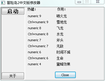 以下是冒险岛2中文版修改器的热键及作用说明