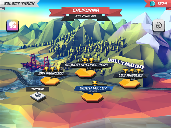 初次进入游戏以及开始比赛后,大多数玩家的反应估计是“赛车游戏的画面还可以这样?”必须承认本作的画面非常独特,如今的赛车游戏为了拟真都在疯狂增加多边形及渲染,而复古的《追逐地平线》却在拼命减少多边形的使用:从车辆到树木、远山、雕像、城市建筑,以及摩擦产生的火花、车尾扬起的尘埃、漫天的飞雪全都是棱角分明,但由于光影效果非常好,所以产生了独特的简约美。