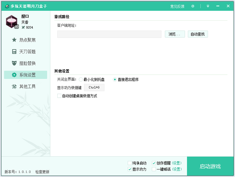 可对关闭主界面和显示功力快捷键进行设置