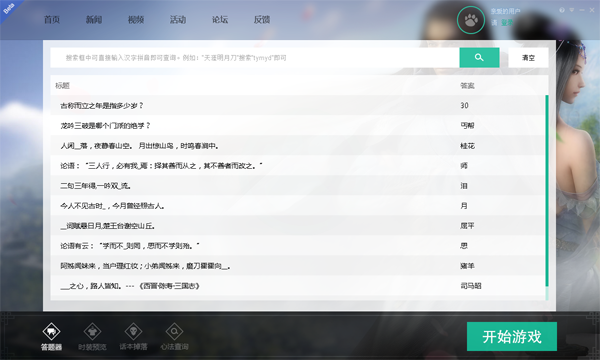 178大脚插件为各位天涯明月刀OL玩家精心打造的一款游戏辅助工具,它就是天刀大脚插件,主要提供了人物捏脸、游戏答题、资讯攻略等功能。