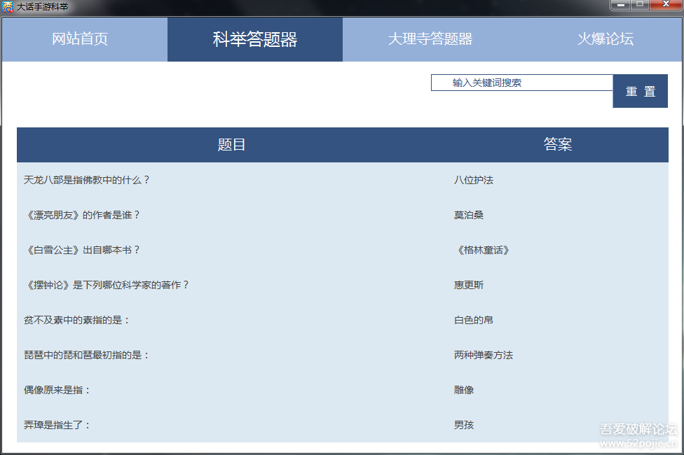 1)大理寺、科举答题器(数据题库毕竟需要官网更新,大家还是来论坛和官网使用吧!)