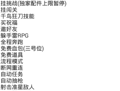 辅助战斗:任何地点启动,功能:配合你战斗,自动下蹲,自动起身,自动开枪,自动躲雷