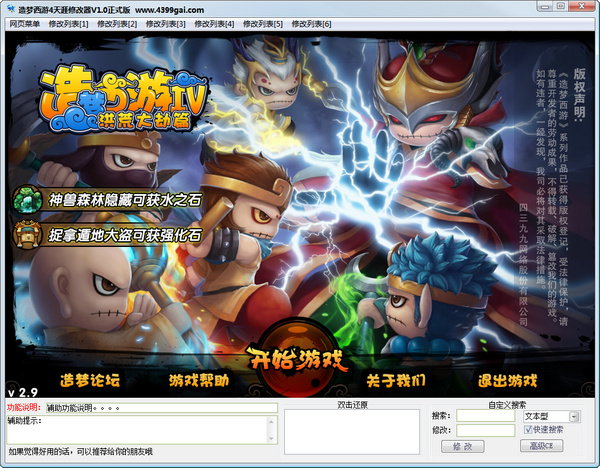 造梦西游5修改器终于研发成功了,相信很多小伙伴都会十分的激动,毕竟对于造梦4小伙伴都已经开始玩腻了,有了造梦西游5修改器,就可以让你们在造梦西游5中快速登录外,还可以获得清理白屏、无限连击、爆率修改、一键