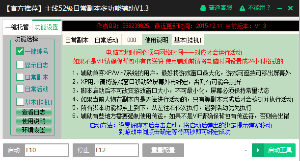 功能:【官方推荐】主线52级日常副本多功能辅助V1.3