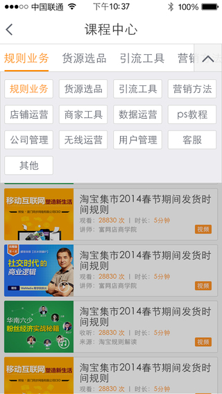 1、课程类型丰富,涵盖新手开店、店铺引流、成交转化、规则、工具使用、无线运营等所有大类,全方位解决学习需求