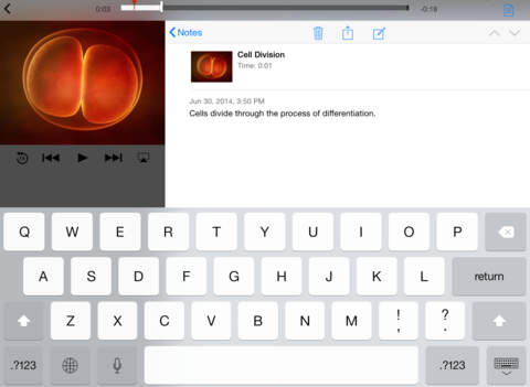 在教室做课程笔记,或者在 iTunes U 播放音频或视频讲座时做笔记
