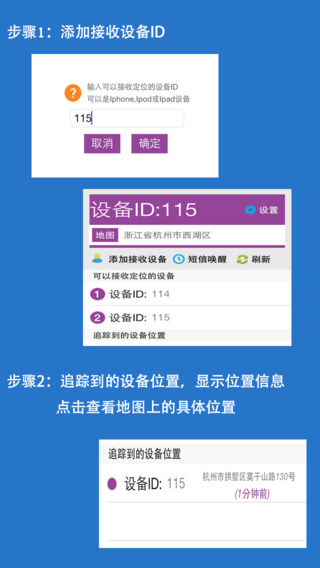 步骤2:追踪到设备位置,显示位置信息;点击查看地图上的具体位置