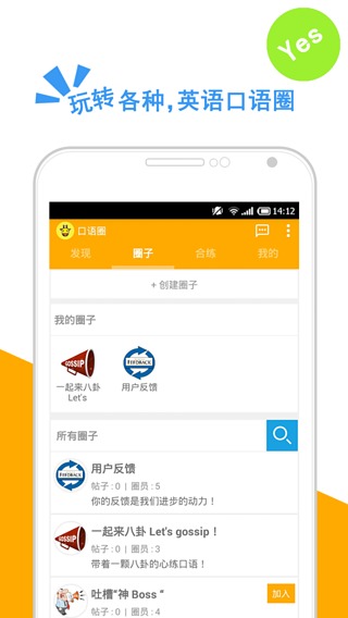 口语圈的用户,你就具备创建圈子的权利!圈子的范围会随着口语圈的成长而壮大。用户既能感受到在圈主带领下的浓厚学习氛围,也能在公共圈自由发挥。