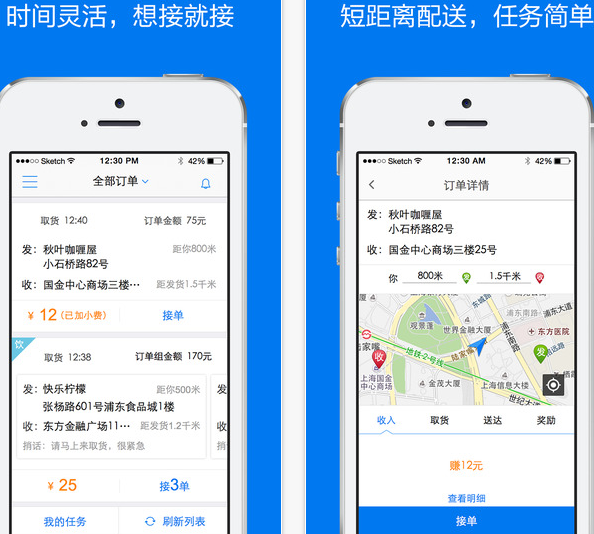 1. 手机接单, 送外卖, 送水果, 反正各种送